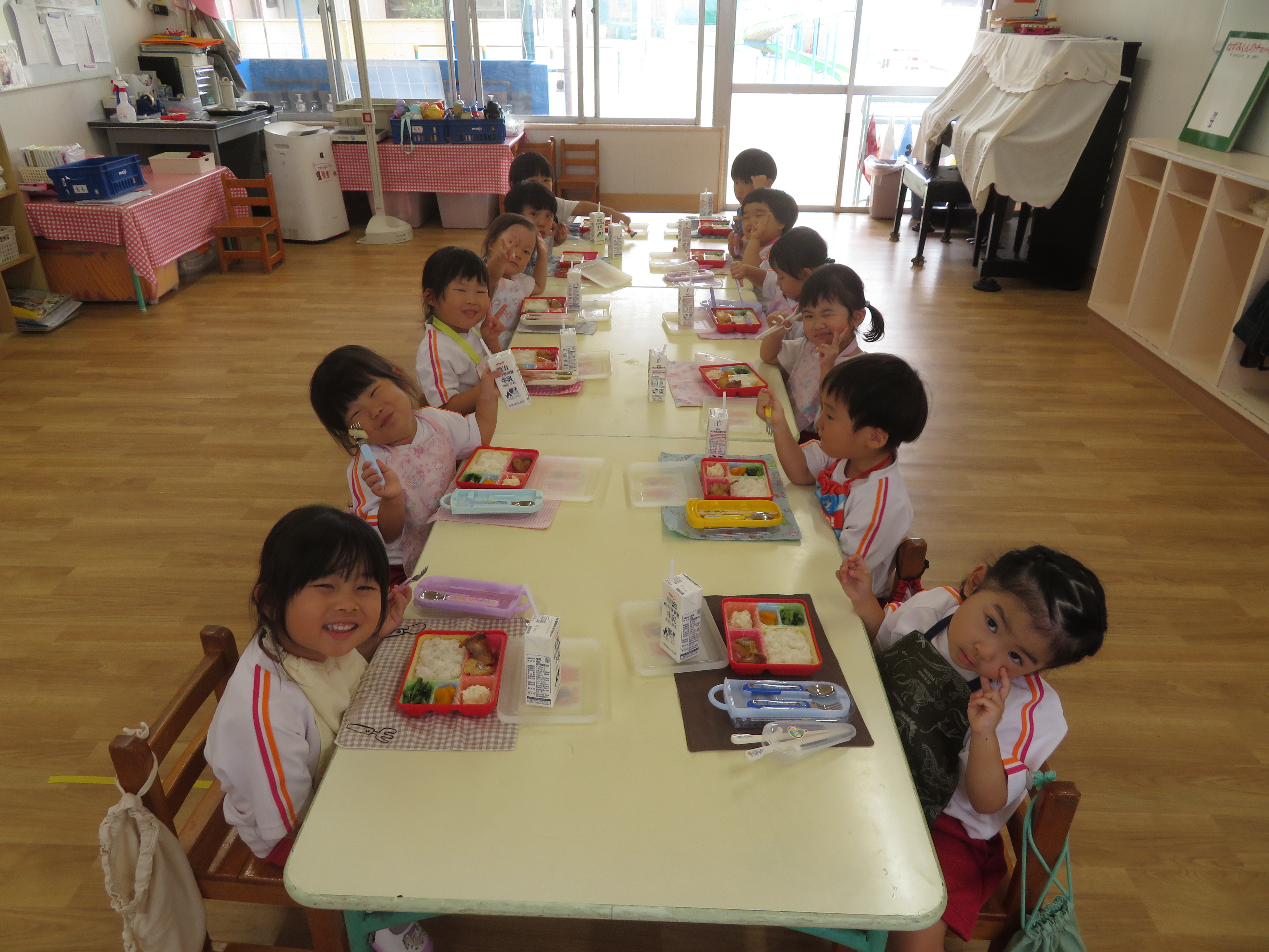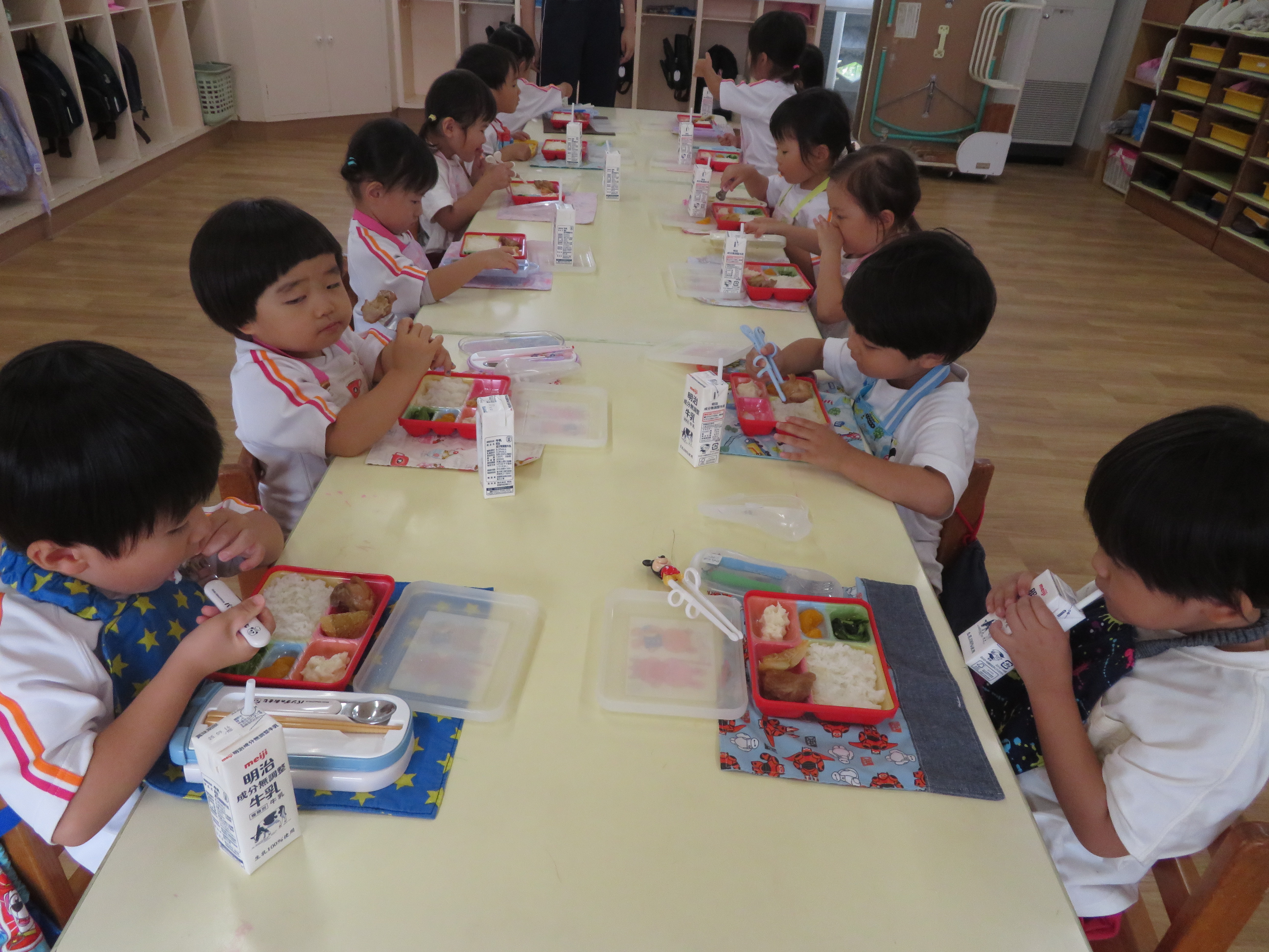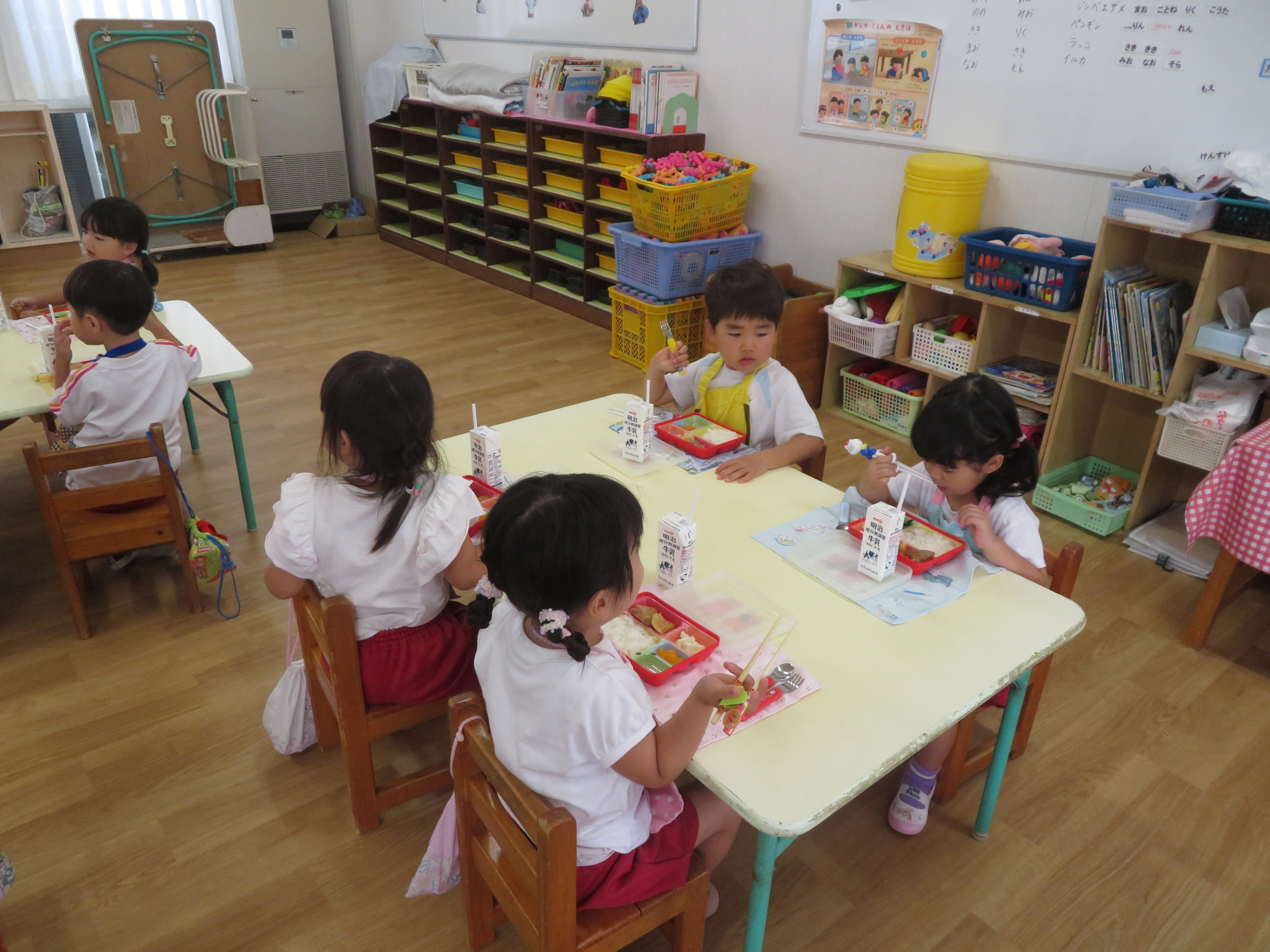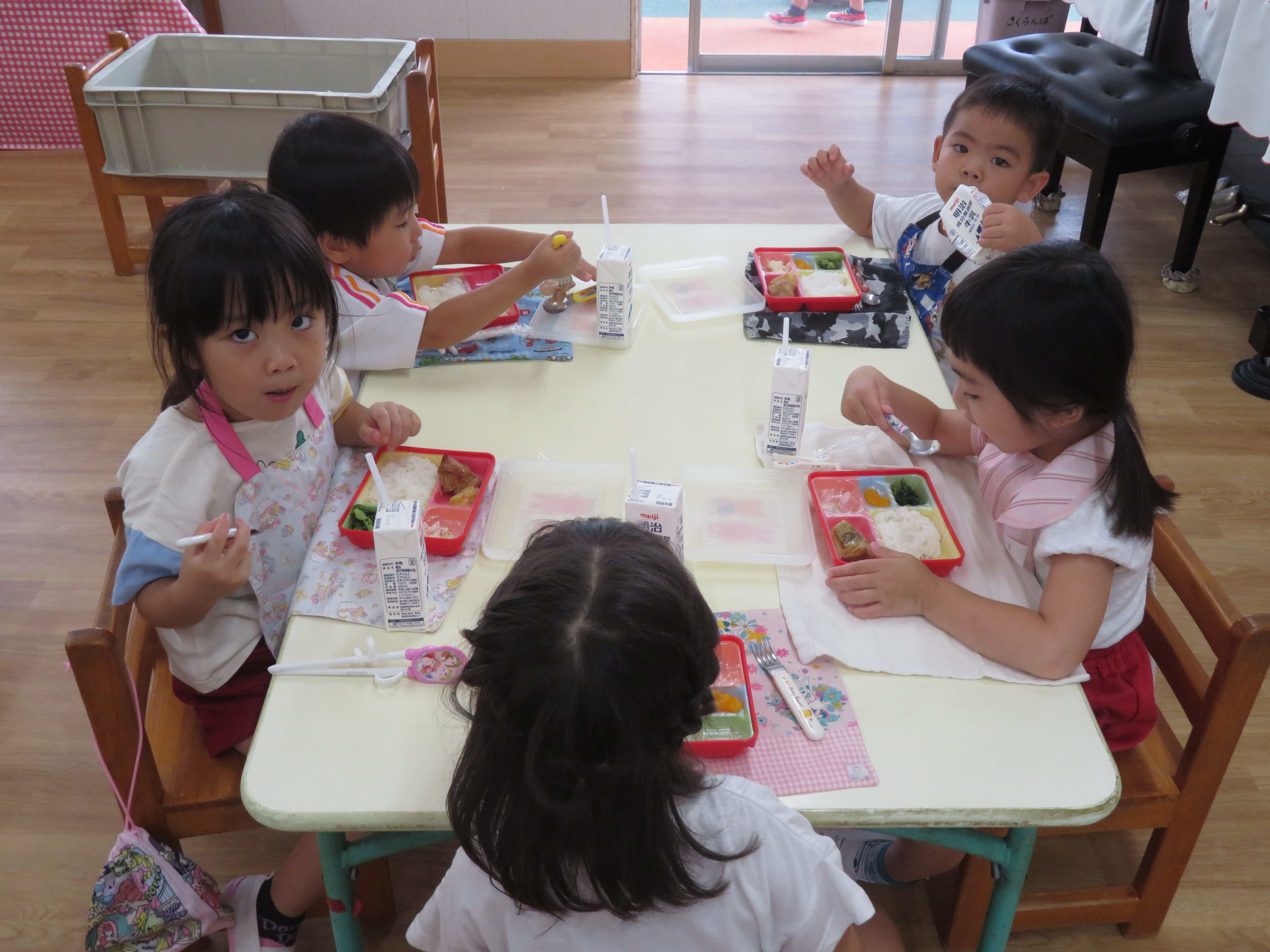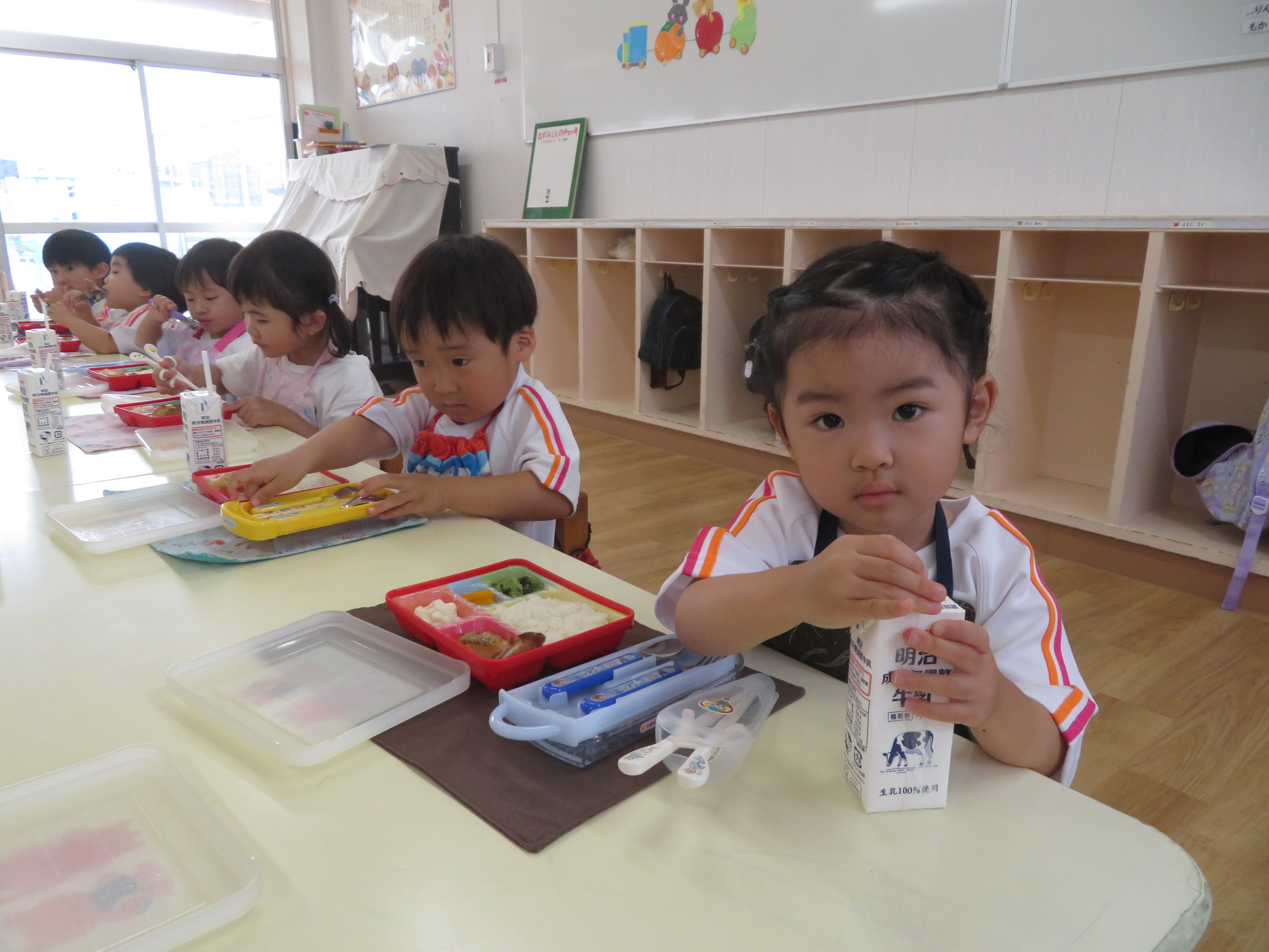 新しいお友達といっしょに給食です
