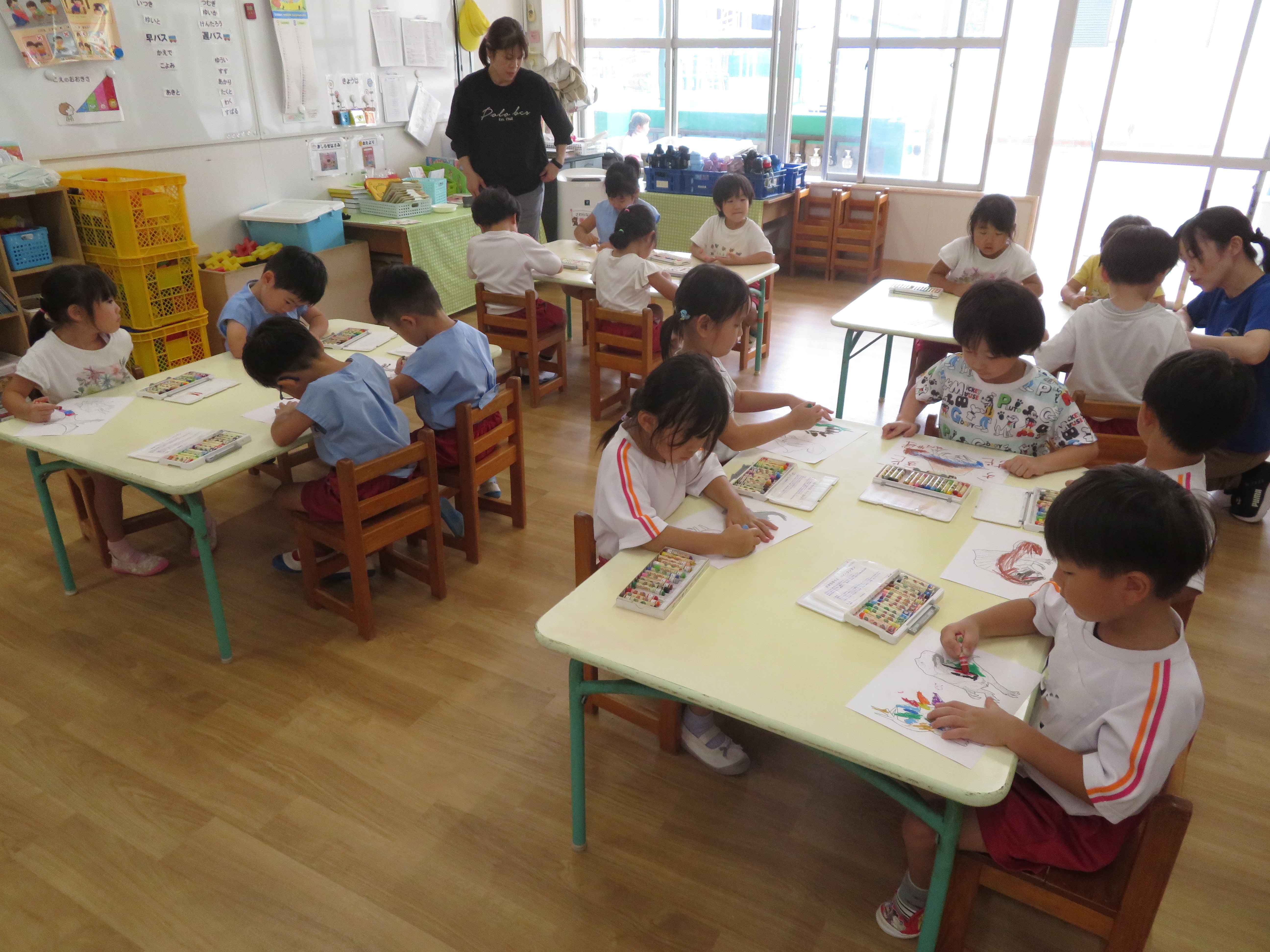 敬老の日のハガキづくりやお絵かき中