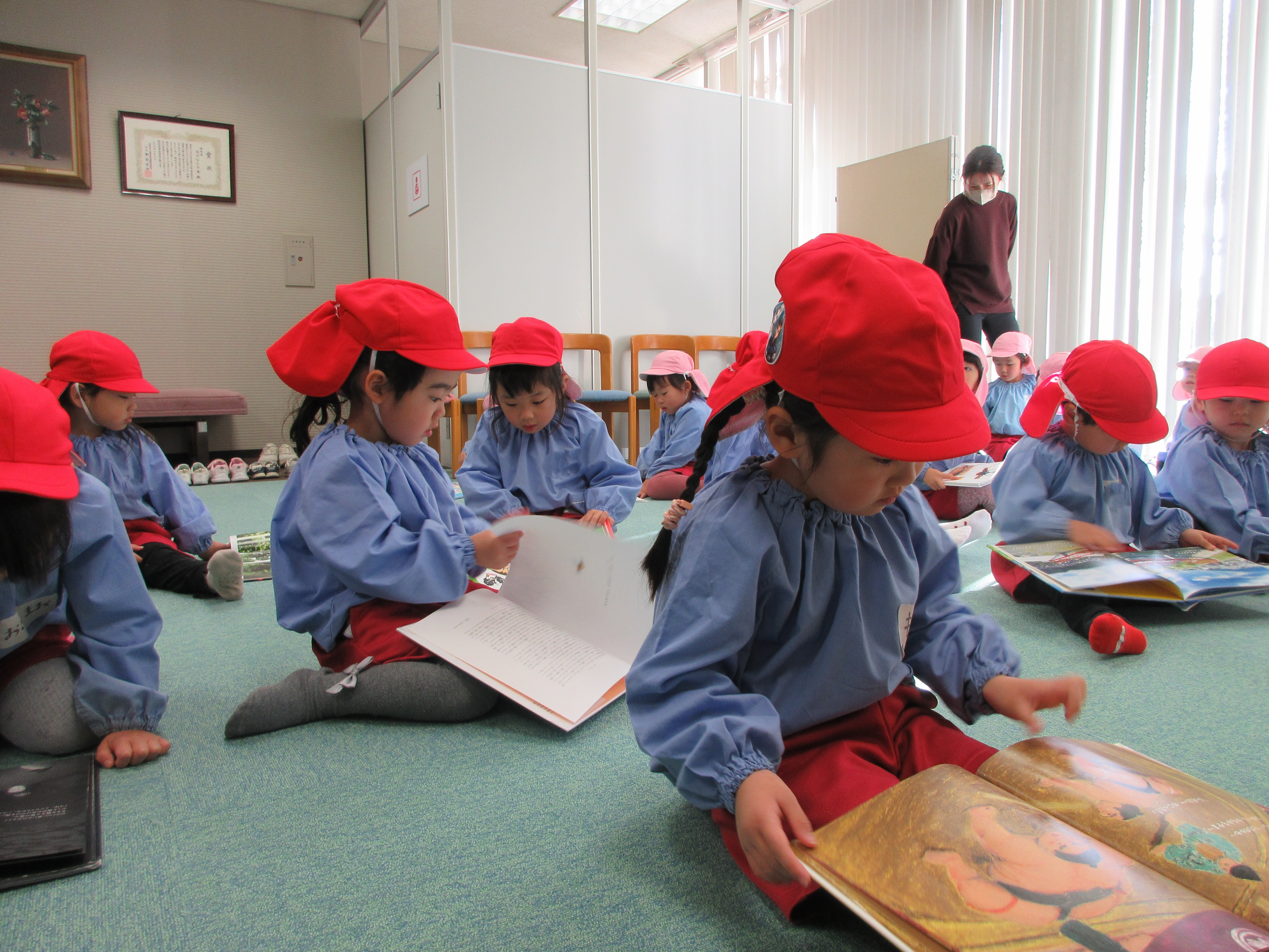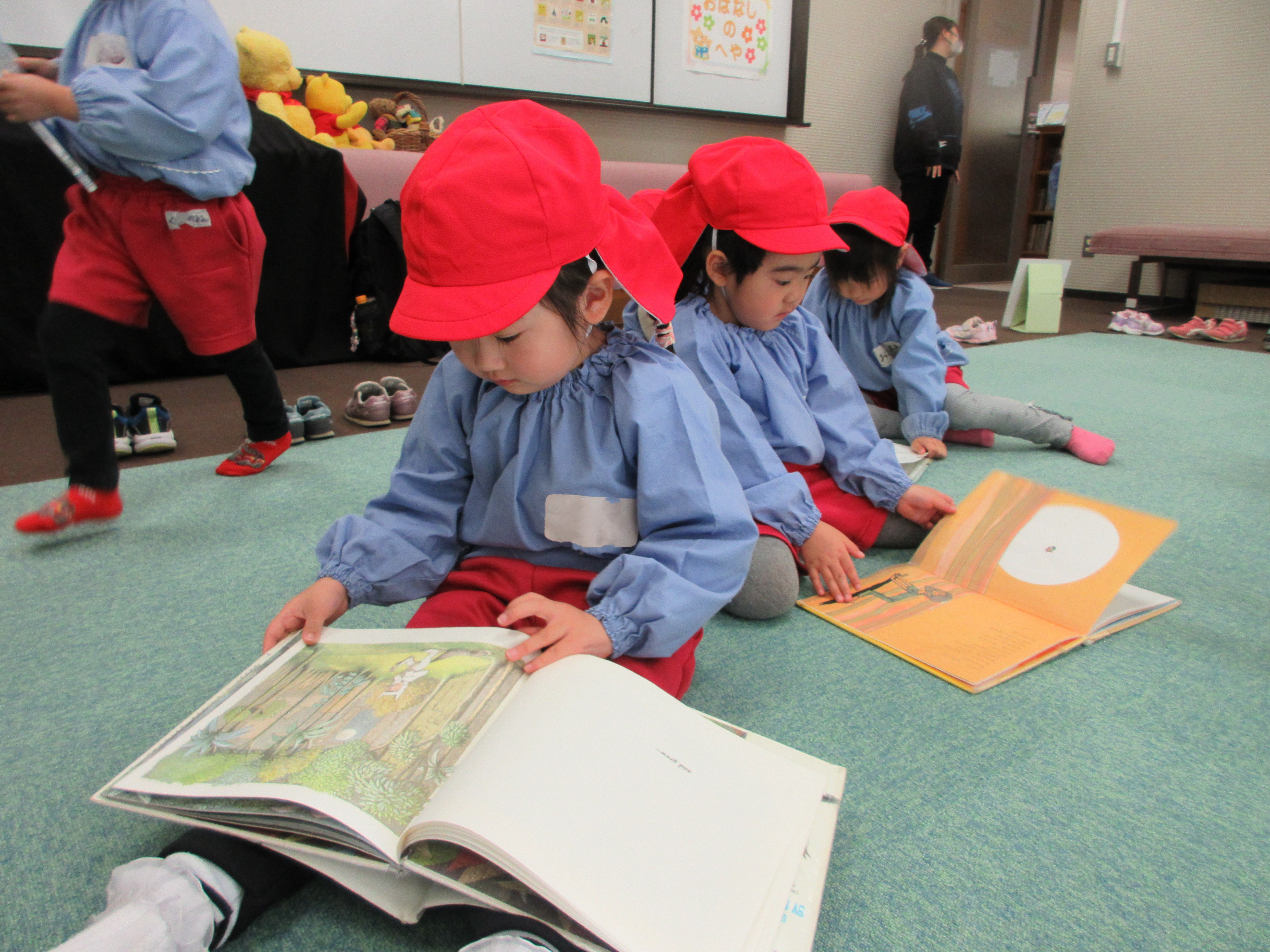 学期に1回、絵本を購入しています。今回も、全部の先生方の意見を取り入れて35冊を購入しました。購入した絵本はリズム室前の絵本コーナーや、各教室に配置されます。子ども達は絵本が大好きです。たくさん手に触れて、読んで、知識を増やしたり、想像力を高めたりして欲しいものです。
